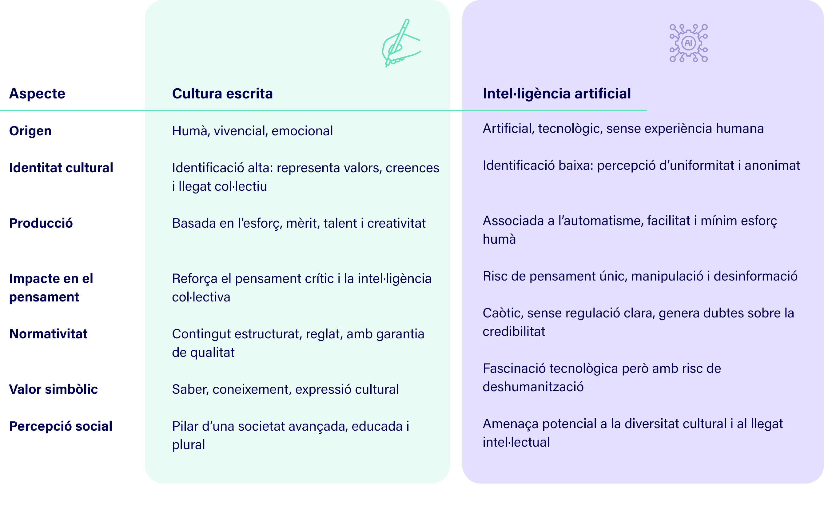 Pel que fa a l’impacte de la IA en la societat, en general, i en el sector cultural, en particular, hi ha un consens generalitzat en percebre-la com un risc per a tots els àmbits.
