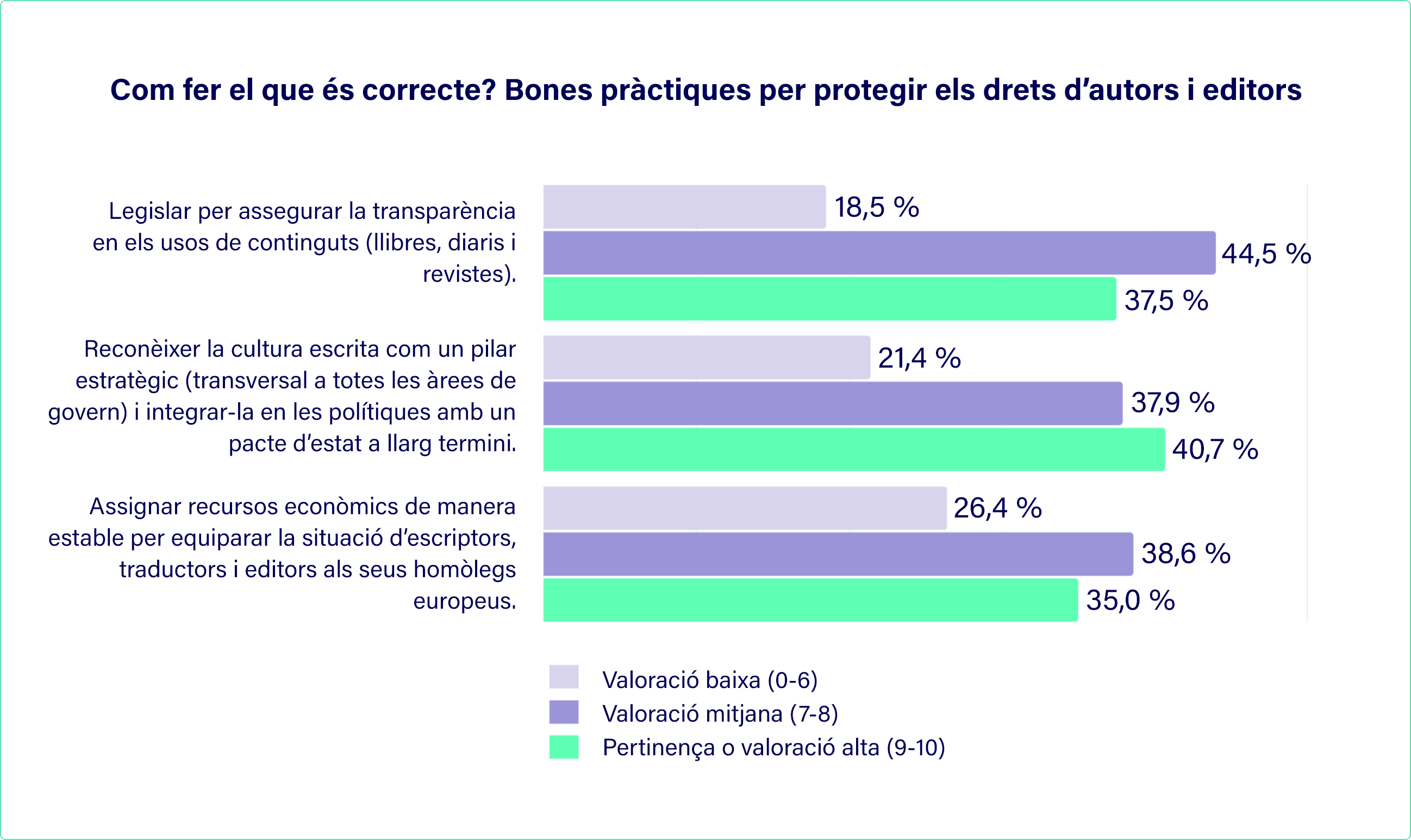 El tercer Observatori conclou, com a resum, que la ciutadania veu en la cultura escrita i els drets d’autor un bé comú —un «bé de mèrit»—; que les plataformes tecnològiques, en primer lloc, i les administracions públiques, en segon lloc, contribueixen a normalitzar l’ús no autoritzat de continguts editorials protegits (democratització de la pirateria); i, en última instància, que la protecció efectiva de la propietat intel·lectual dels autors i editors requereix una responsabilitat compartida entre totes les àrees del Govern —no només de Cultura— i una regulació més eficient.