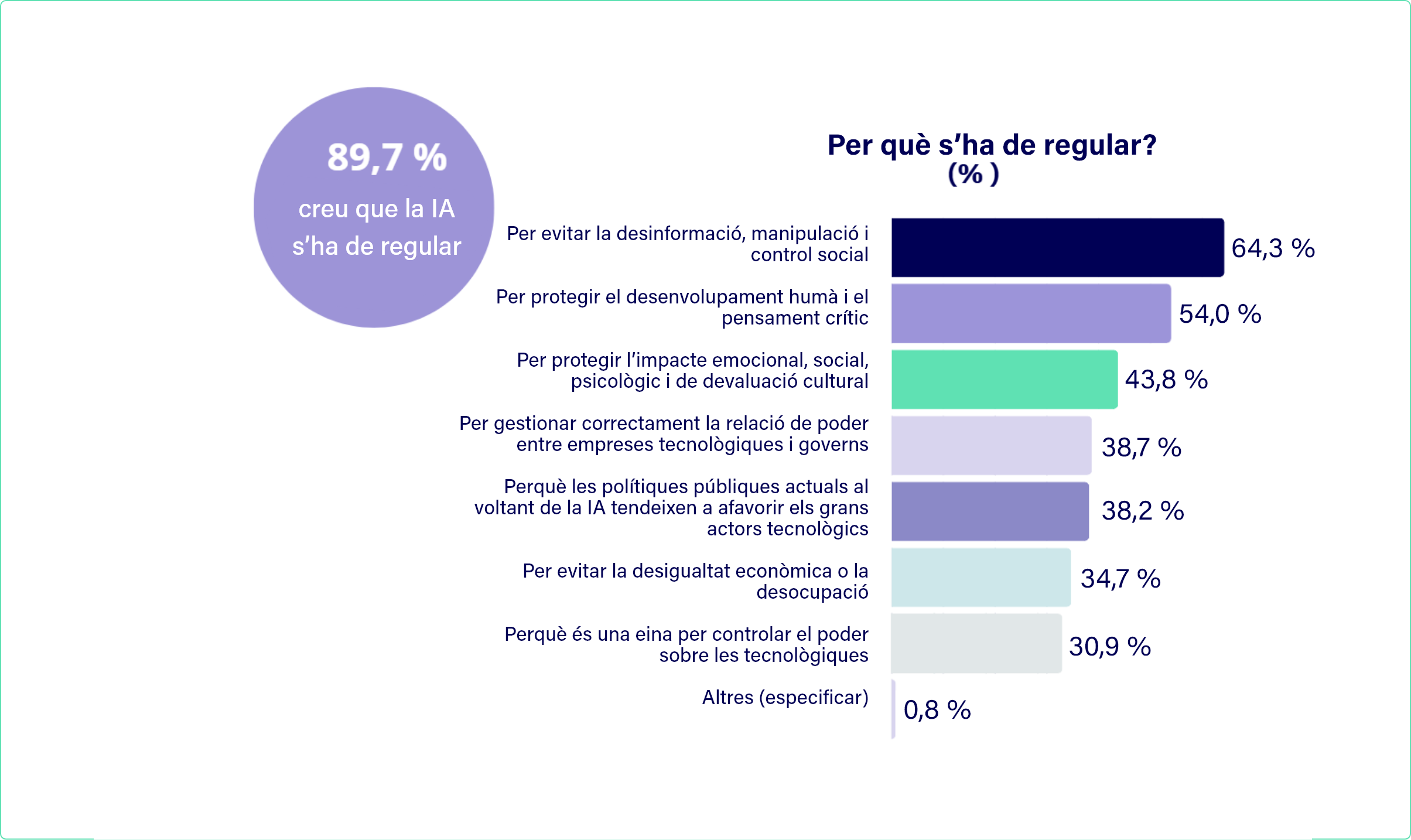 En general es considera que la IA augmenta la vulnerabilitat de les persones i de les societats davant de la tecnologia. Això planteja risc de pèrdua d’autonomia i de control social que Ipsos no va analitzar.